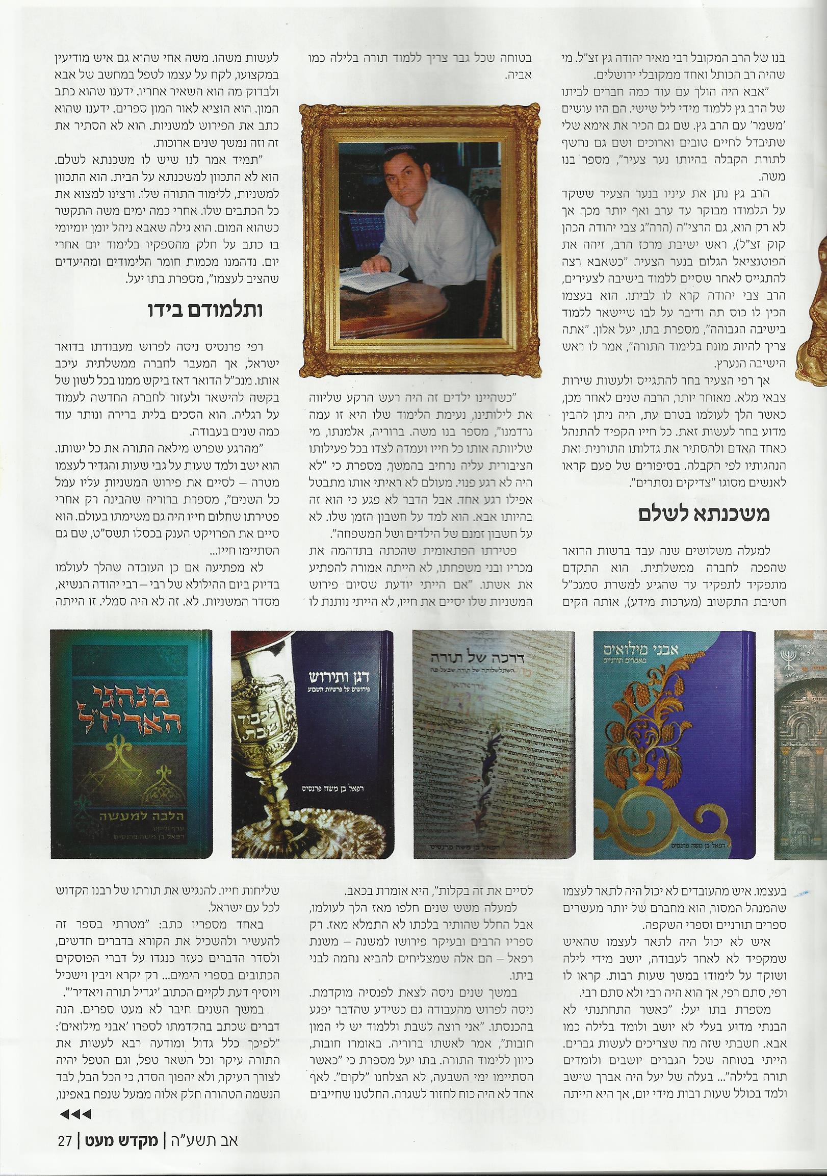 באחד משיחתנו סיפר הרב המחמבר לבנו הגדול שלפני כל הוצאה לאור של אחד מספריו עליו לסיים ש"ס בבלי לעבור ולבדוק שלא נפלה טעות חלילה "מטרתי בספר זה להעשיר ולהשכיל את הקורא בדברים חדשים ולסדר הדברים כעזר כנגדו על דברי הפוסקים הכתובים בספרי הימים... רק יקרא ויבין וישכיל ויוסיף דעת לקיים הכתוב "יגדיל תורה ויאדיר" (מכתביו).